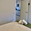 The flat consists of two bed rooms with double beds and an open plan kitchen/living room with a sofa bed and a full bathroom. The entire flat was fully reconstructed in 2021, with high quality materials and a light colour scheme.